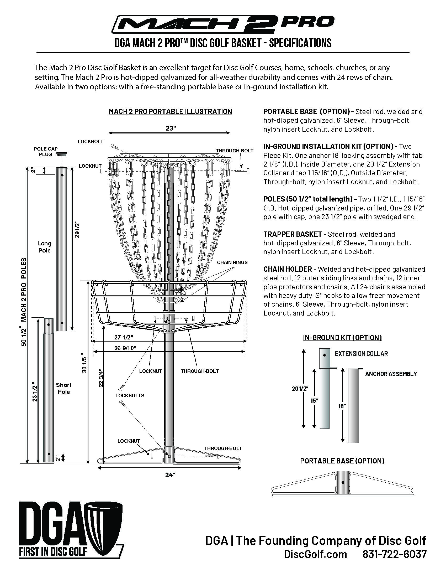 DGA has been producing high-quality, dependable disc golf equipment for over 40 years with many of our original baskets still in use today. Having this knowledge will give you the peace of mind that you have made the best decision with your DGA Mach II purchase.